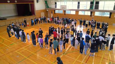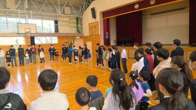 12/9 児童生徒朝会 投稿: 城山小・中 管理者 (12/09) 生徒会総務企画による「お楽しみ朝会」を行いました。 今回は、学校全員で「整列ゲーム」を行い、誕生日順に並びました。 ゲームは失敗してしまいましたが、小中色々な学年の児童生徒が交流する時間となりました。