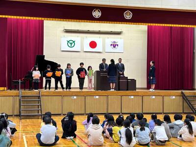各学年代表の児童・生徒が壇上で修了証を受け取りました。